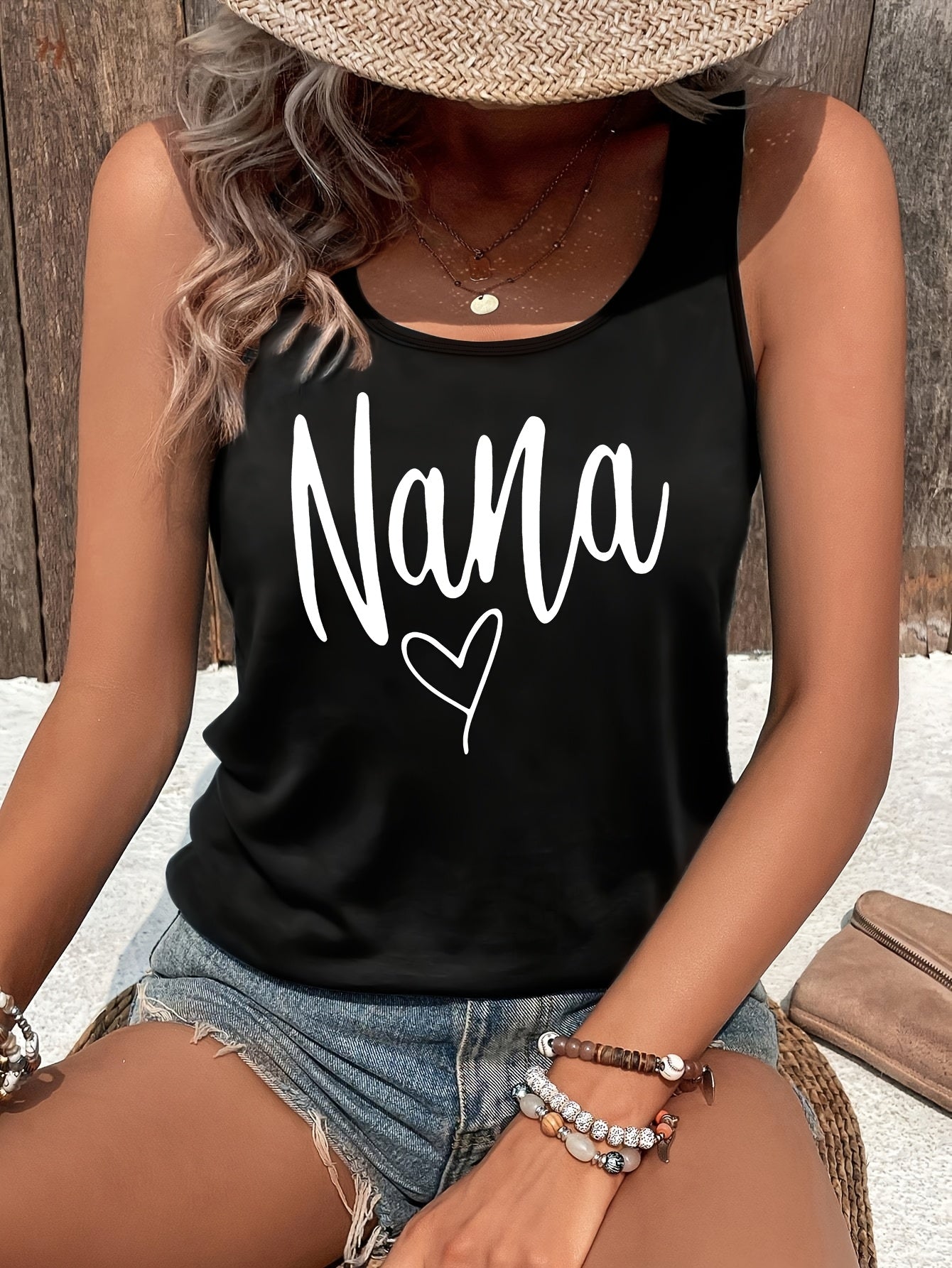 1pc Women's Pink Sleeveless Vest, Sparkling Red Heart And Star Print, Printed Pattern, Non Sequined - Casual Summer And Spring Top, Round Neck, Machine Washable Comfortable Fabric