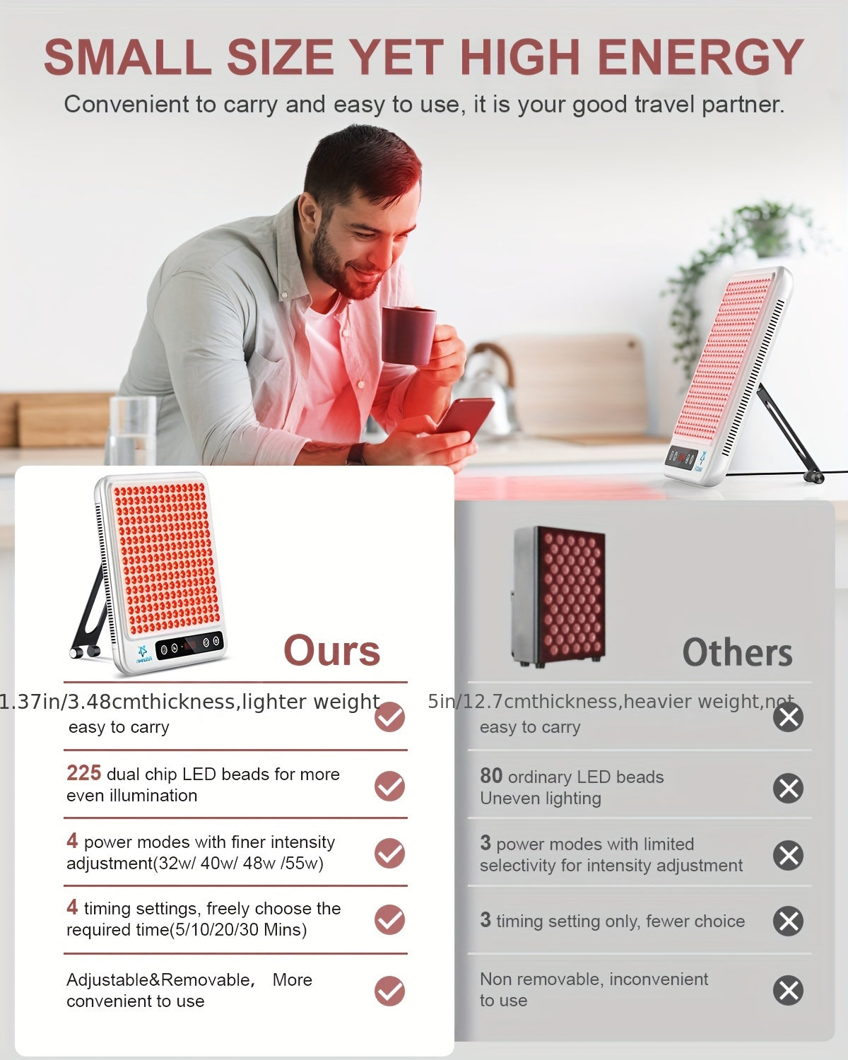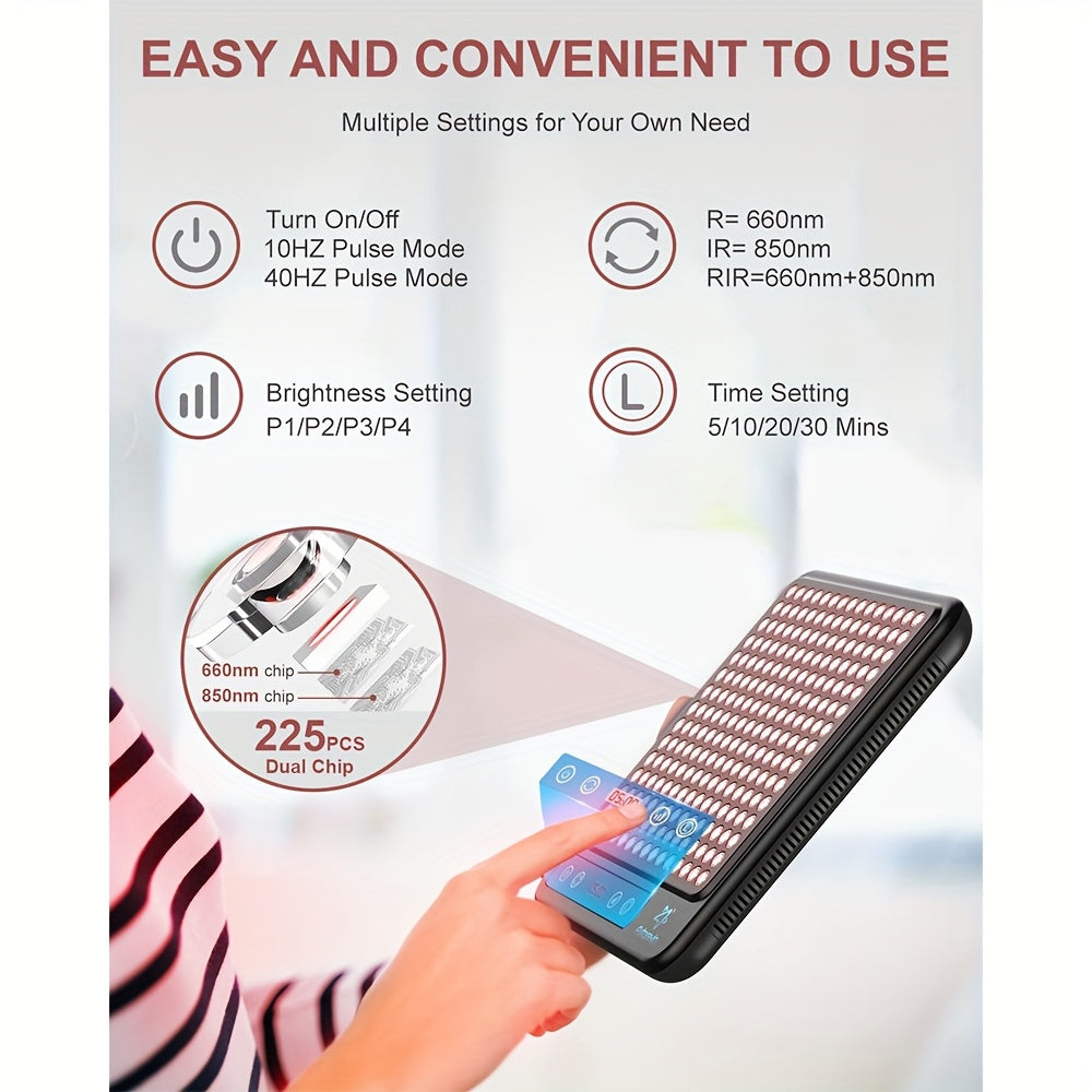 225 LEDs Dual-Chip Red Light Therapy Panel, Portable 660nm Red Light & 850nm Near-Infrared LED Device With Stand Timer, For Face Body Skin Care Home Spa Use