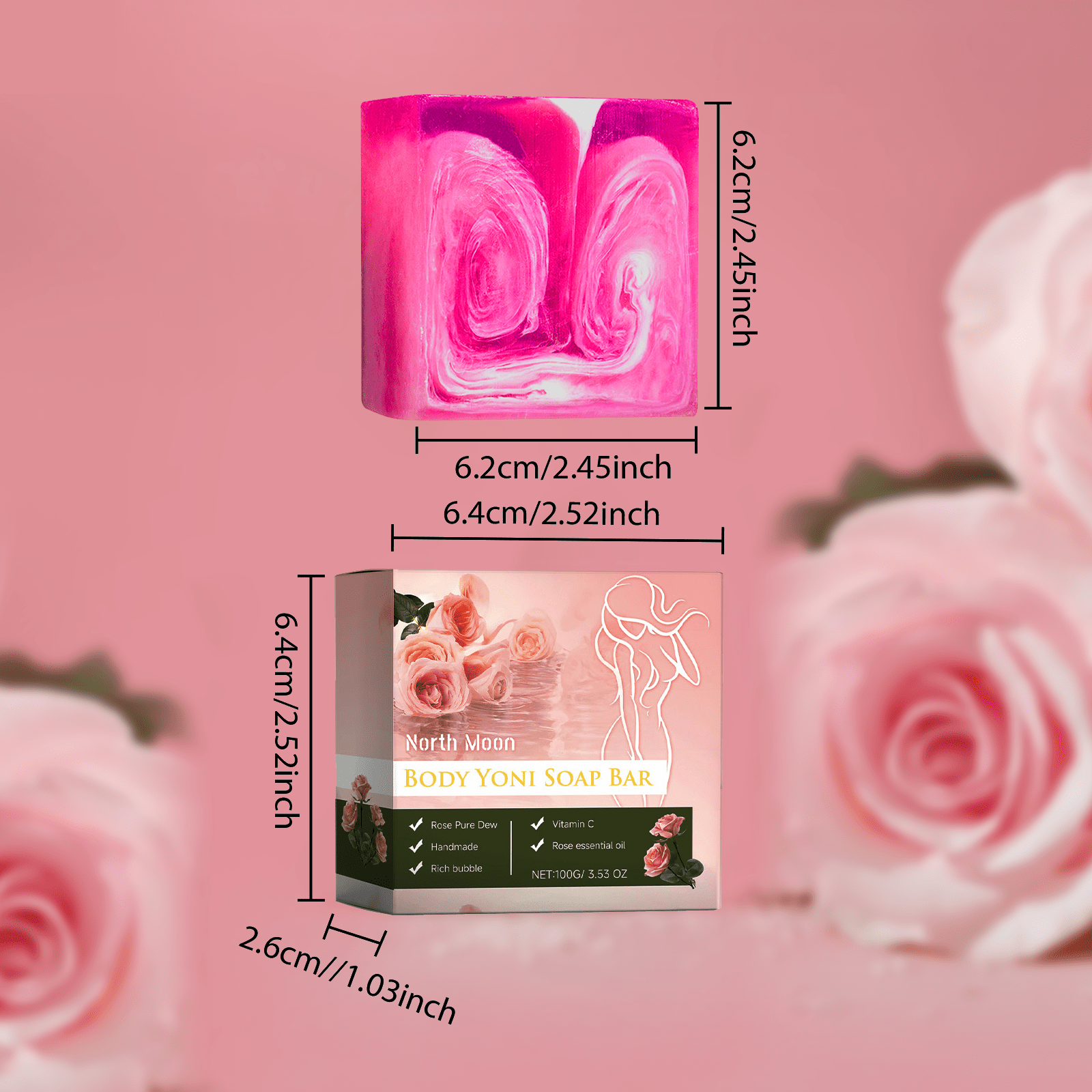 Introducing the 3.53oz Rose Oil Intimate Body Soap from Ms. E—a gentle, daily bathing cleanser crafted for intimate cleansing care and full-body refreshment. Enriched with rose oil and cocoa butter, it delivers a delicate rose fragrance that lingers while nourishing your skin.