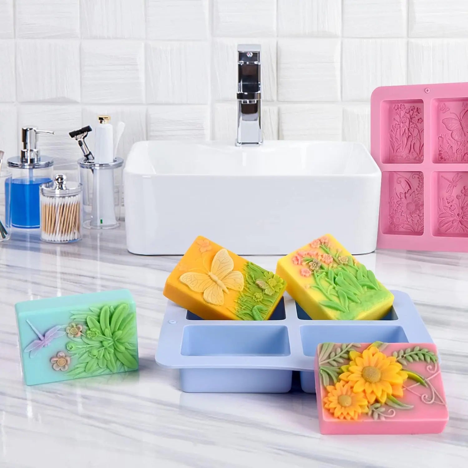 3D Insect Flower Silicone Soap Mold for Multi-Use Crafts Bath Bombs Chocolate Candles Polymer Clay diy with Easy Release Texture