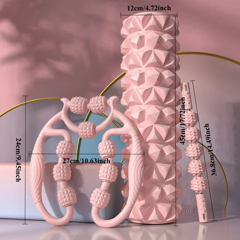 Experience targeted relief with this Foam Roller Set 3pcs, a pattern-driven tool for your deep-tissue massage that revives tired muscles and accelerates your recovery.