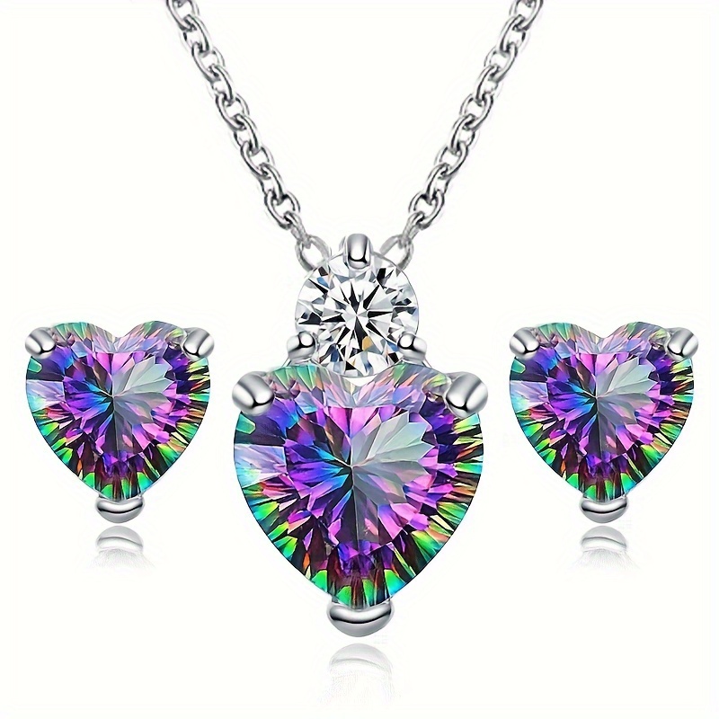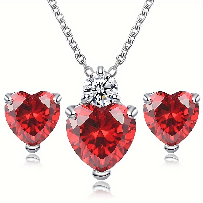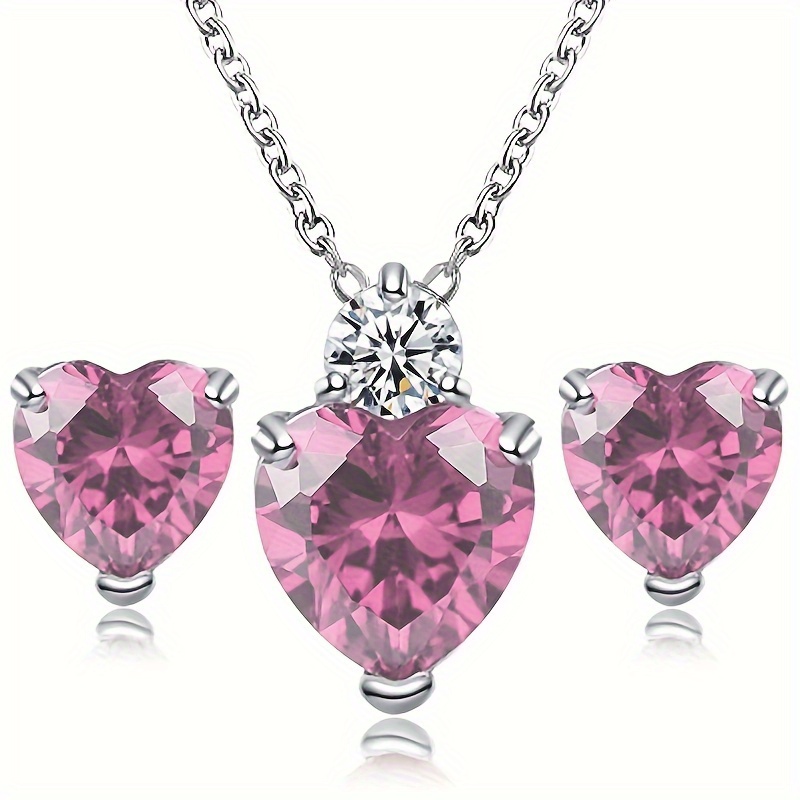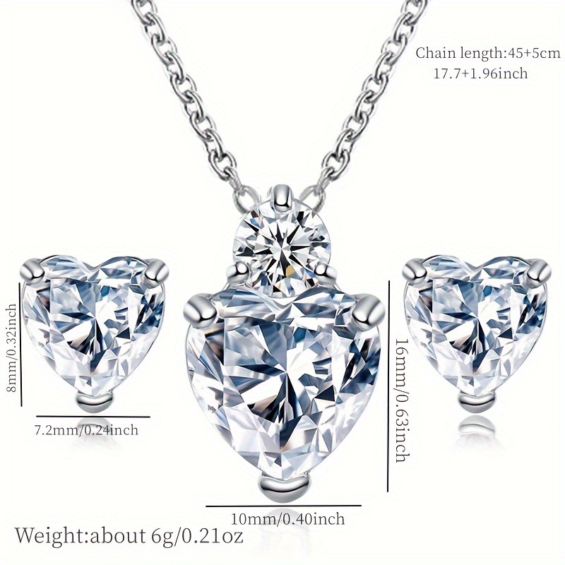 3pcs Sparkling Zirconia Heart Stud Earrings And Necklace Set For Teen Girls, Birthday Gift