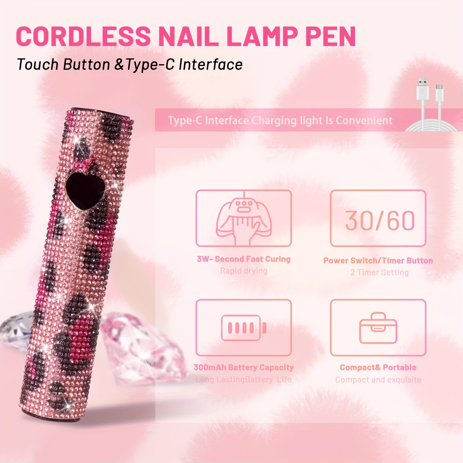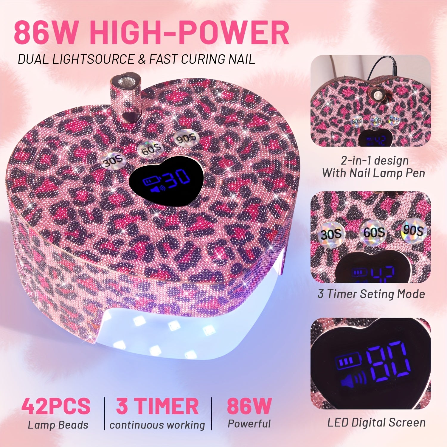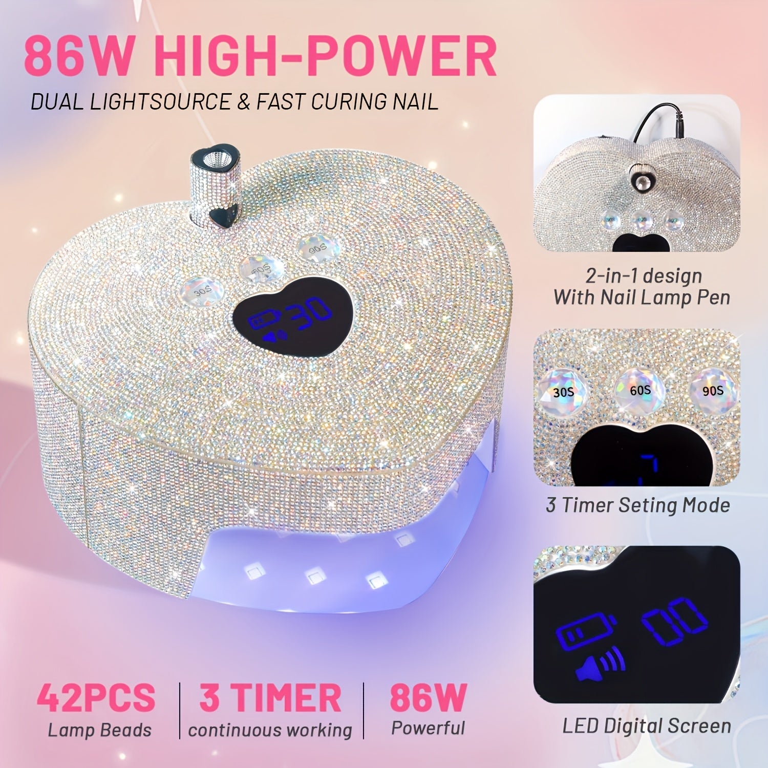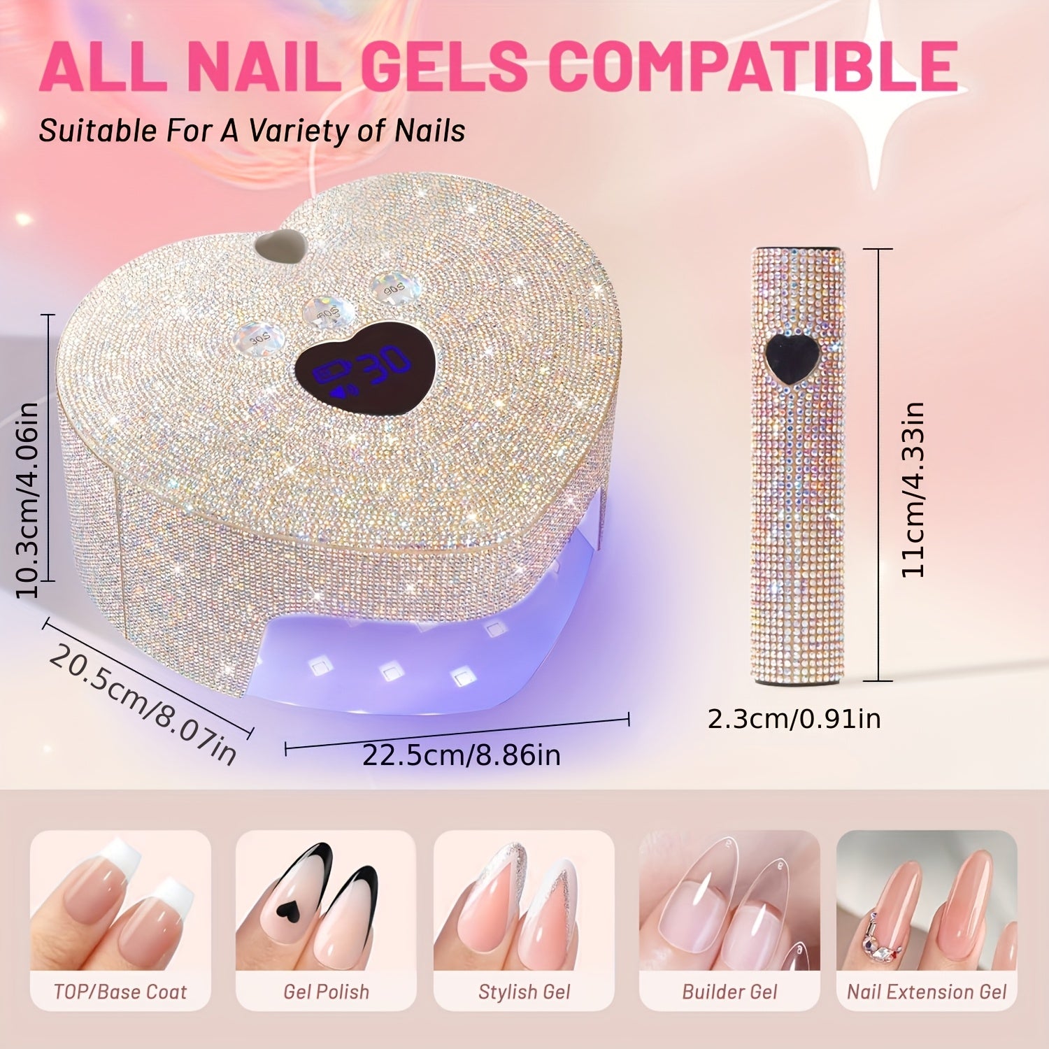 86W Cordless LED Nail Lamp with A Handheld Nail Lamp, 4 Timer Setting Touch Control & Auto Sensor for Gel Nail Polish with Sparkling Nail Rhinestones, with Heart Shape