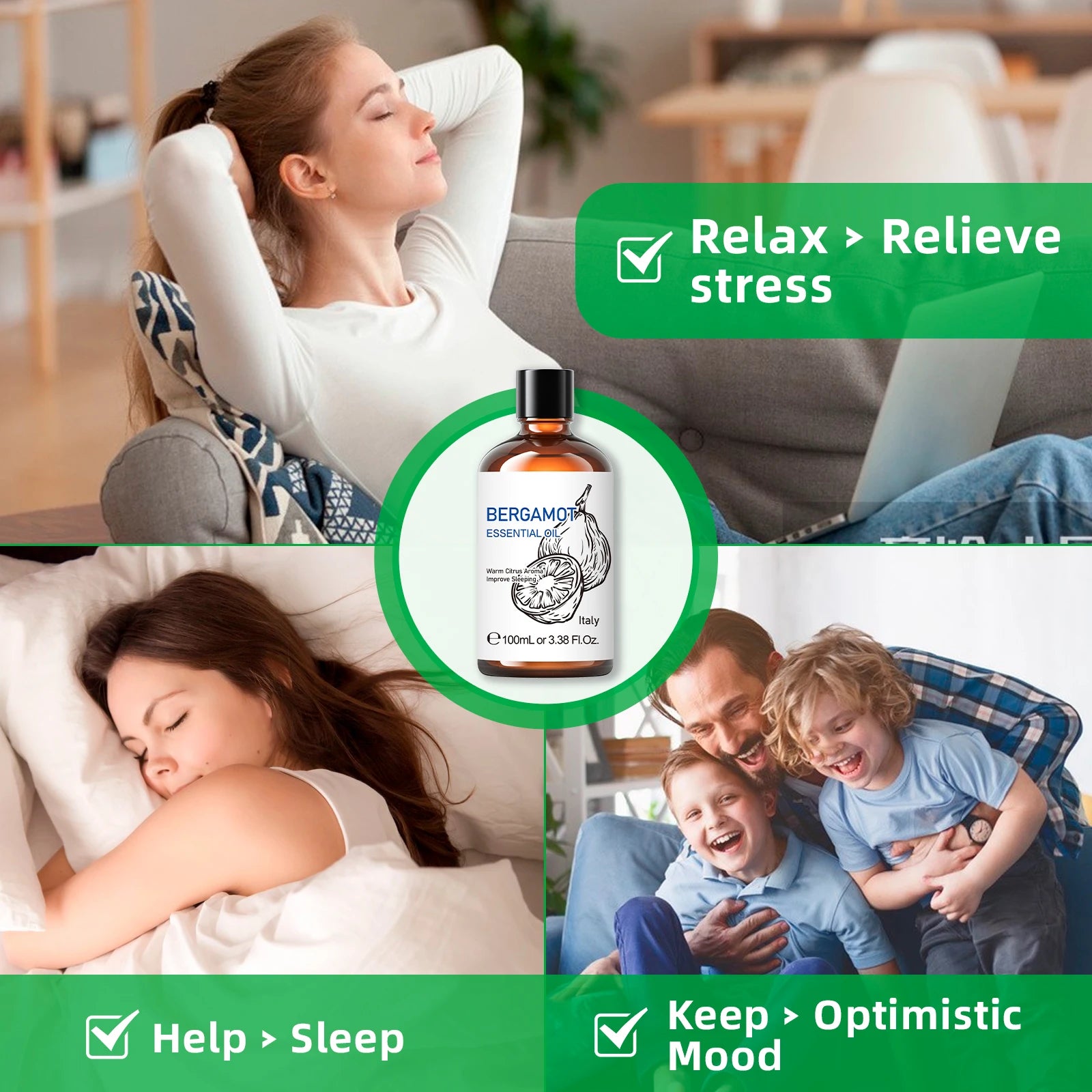 HIQILI 100ML Bergamot Essential Oils,100% Pure Nature for Aromatherapy, Diffuser, Humidifier, Massage, Deep Relaxation
