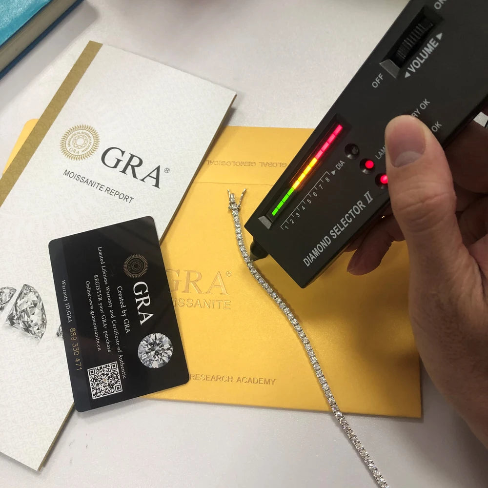 Don’t miss out on the chance to own this exquisite piece of jewelry. Order your KNOBSPIN 2mm Moissanite Tennis Bracelet today and shine bright at every event!