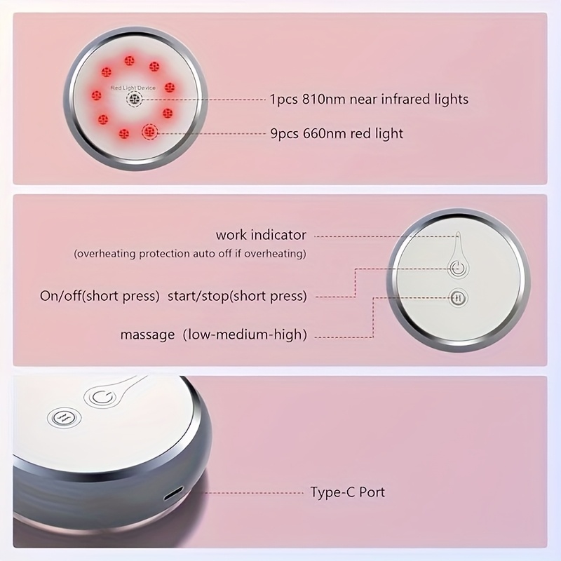 Non-invasive&No side effects: 9 pcs 660nm near-red light can directly act on the Light Beige to relieve pain, and 810nm transmits light faster and penetrates deeper, stimulating the healing, regeneration and pain of body tissues
