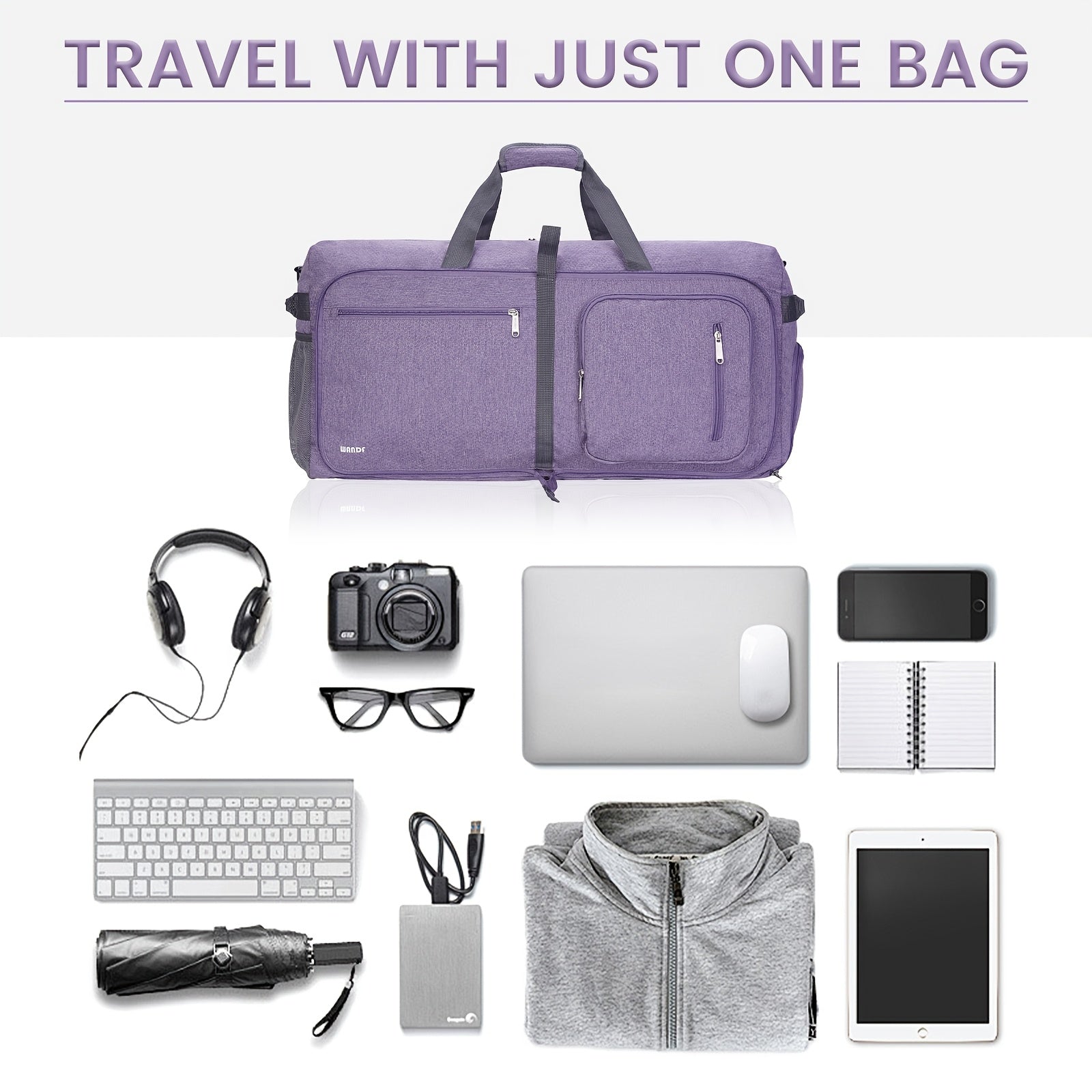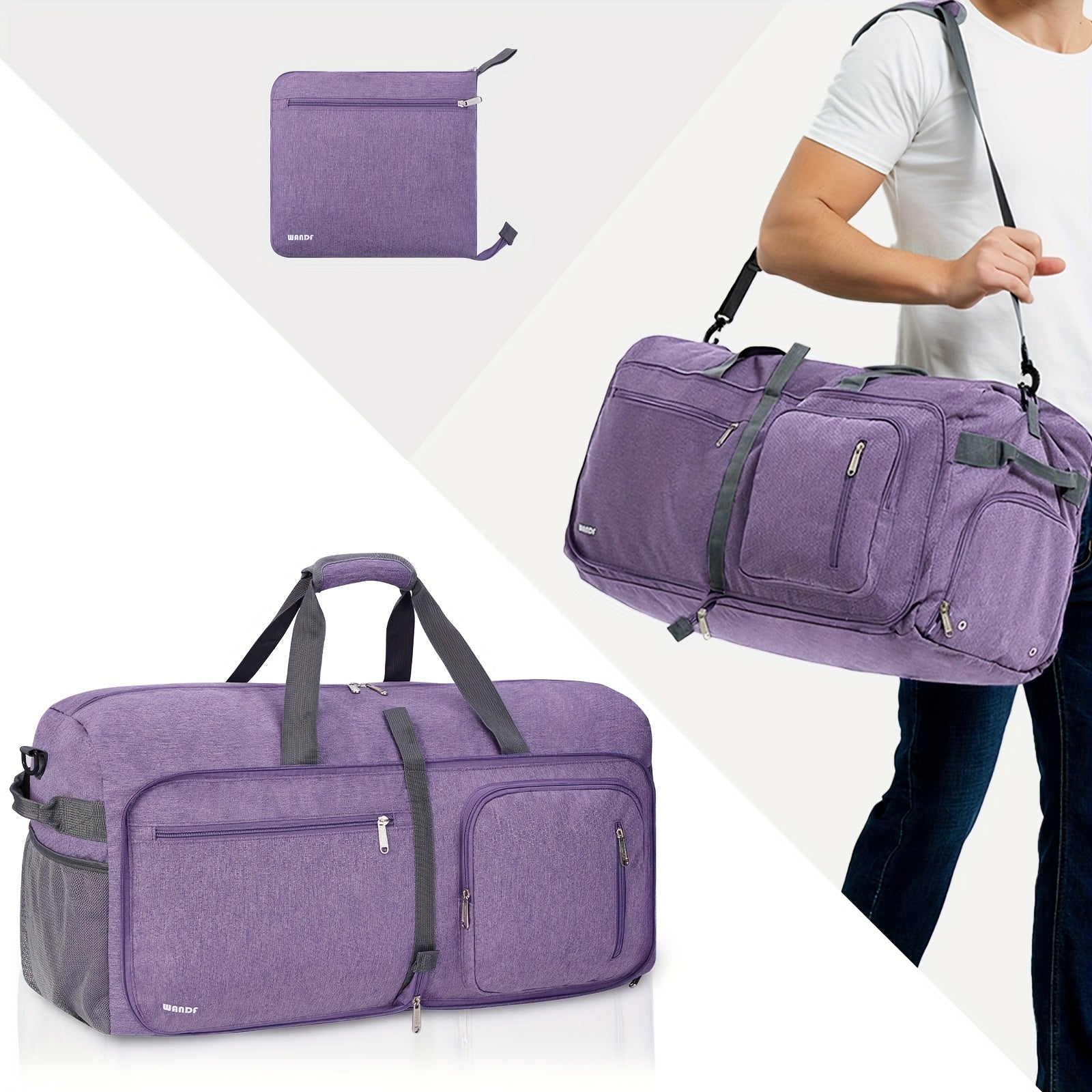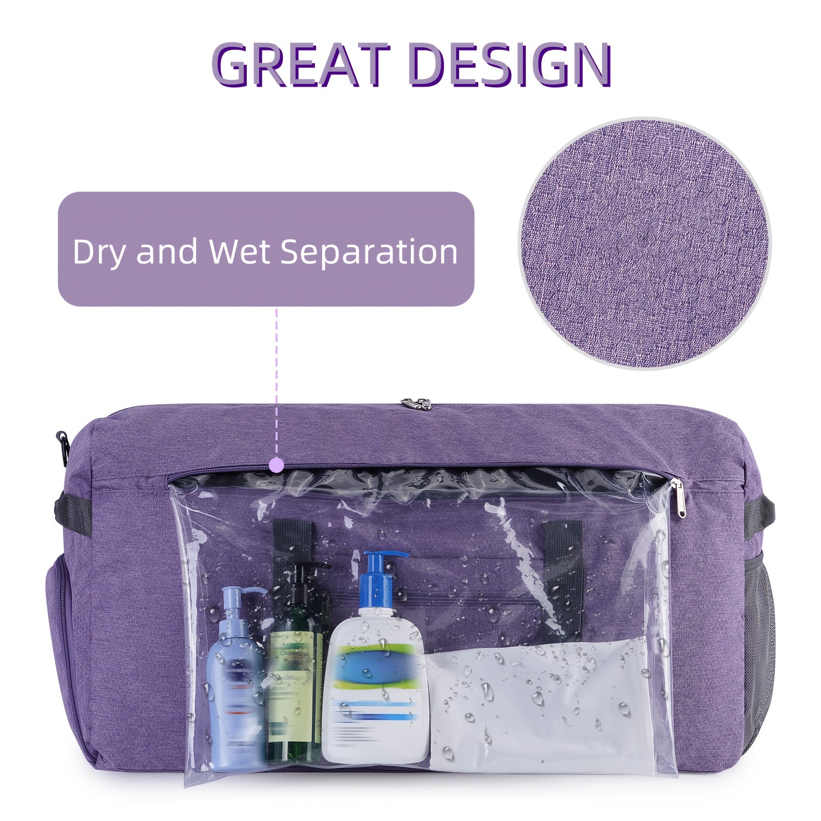 [Travel Duffle Bag] Foldable Weekender Bag - Travel Duffle Bag With Shoes Compartment And Wet Pocket - Portable Travel Bag For Men Women