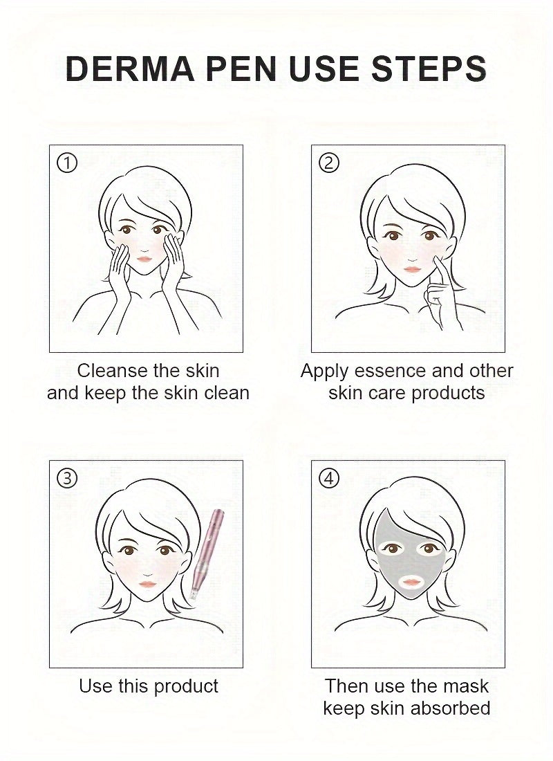 Wireless Charging Model Electric Derma pen & R-Nano Massage Heads