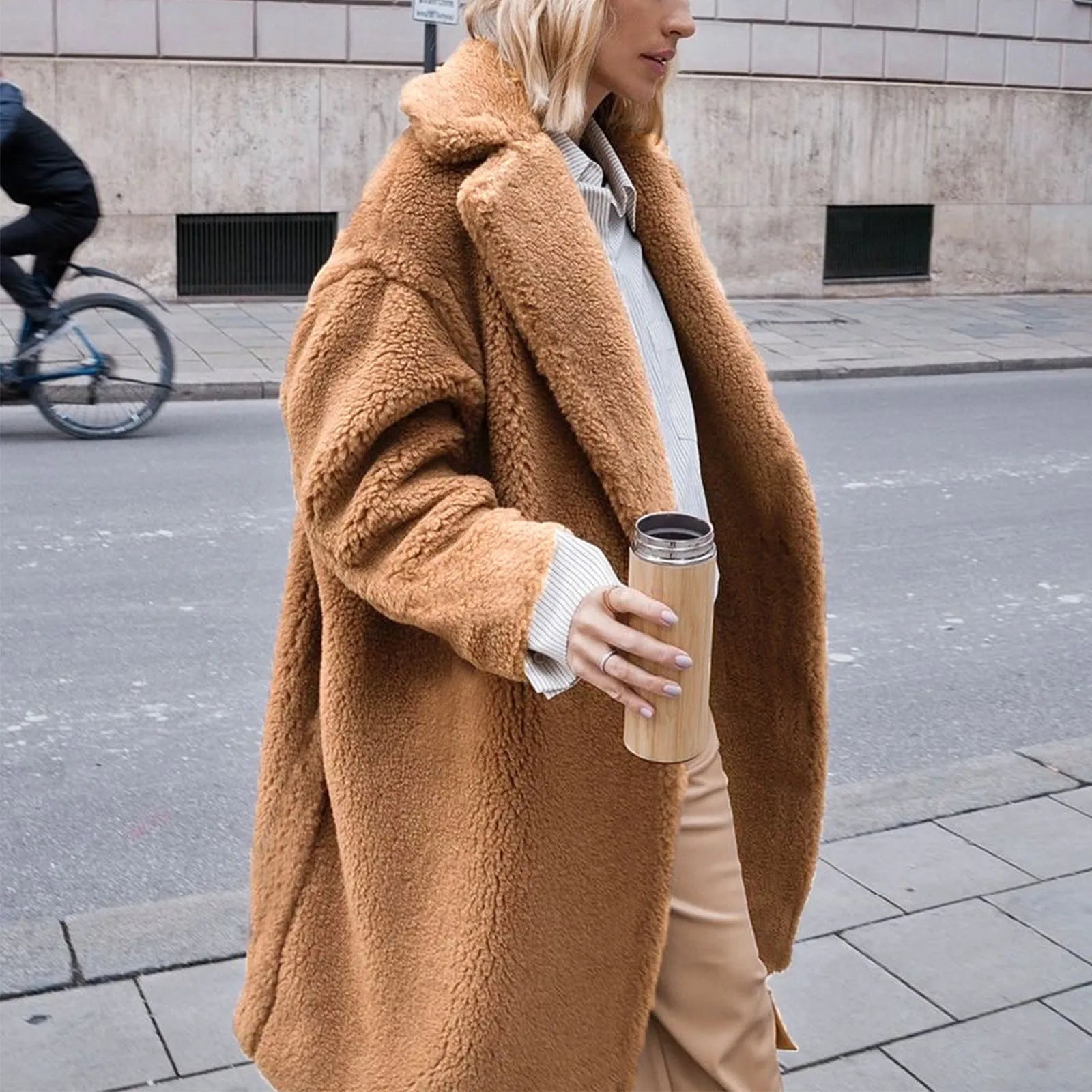 Women'S Winter Jacket Outerwears Women'S Fuzzy Fleece Winter Jacket Faux Lapel Coat Mid Length Teddy Coat Jaquetass Femininas